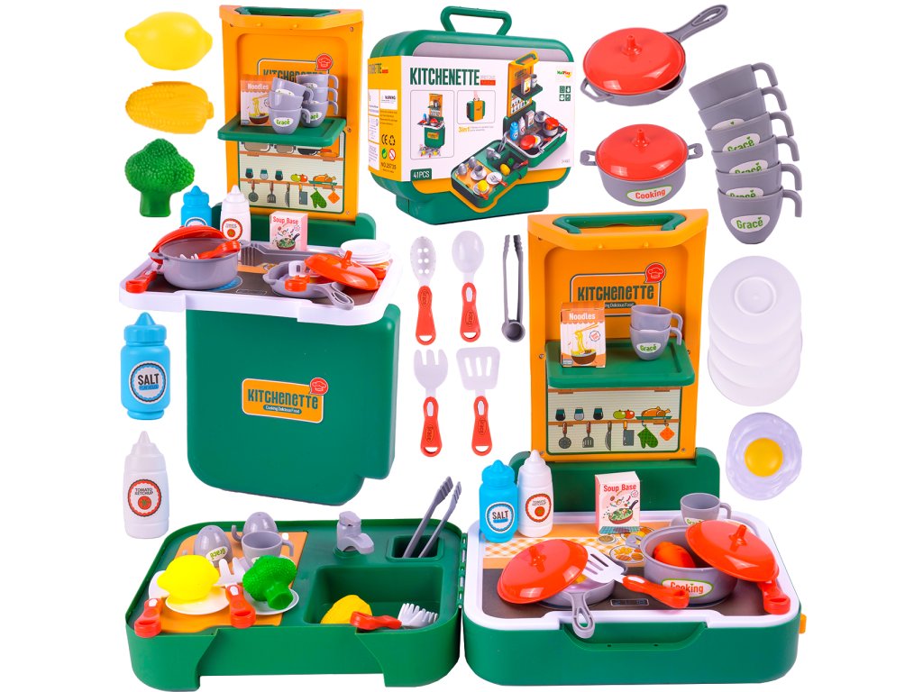 8714 109516 - Rozložená kuchyně 52x31x22 - Složená kuchyně kufřík 26x22x11 Hračka určena pro děti od 3 let Sada obsahuje 29 doplňků