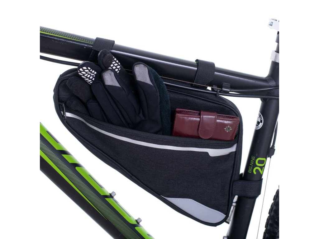 Při jízdě často není dostatek místa pro vaše nejdůležitější příslušenství. Nemáte si kam odložit telefon, peněženku ani klíče od domu. Trojúhelníková brašna pod rám kola proto tento problém dokonale odstraní a poskytne vám dostatek prostoru pro uložení vašich nejdůležitějších věcí!