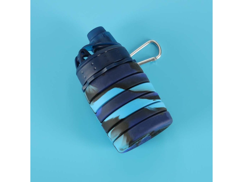 Láhev na vodu silikonová skládací láhev s rukojetí BPA FREE 500ml modrá