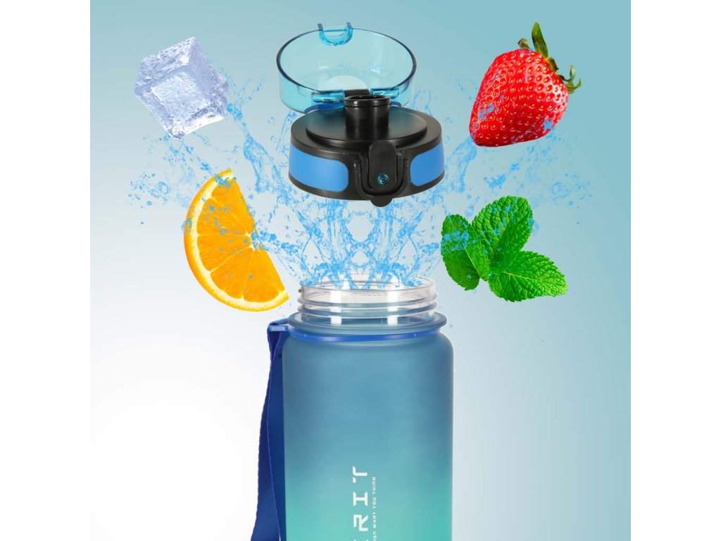 Taková láhev je užitečná jak pro aktivní lidi, tak pro ty se sedavým způsobem života. Vnese trochu organizace do nepředvídatelného denního rytmu. Láhev je připevněna na šňůrce se širokou stuhou, která usnadňuje pohodlné držení láhve v ruce a její nošení s sebou. Uzavíratelné víčko s náustkem vám umožní pít vodu za běhu bez obav z vylití obsahu.