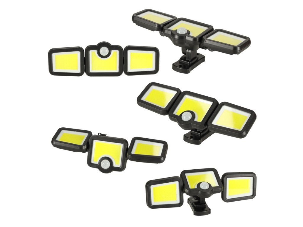 Solarna lampa z trzema połączonymi reflektorami zapewnia szeroki obszar oświetlenia otoczenia. Działa w dobrze nasłonecznionym miejscu, skąd panel będzie czerpał stosowną ilość energii do emitowania światła w nocy.