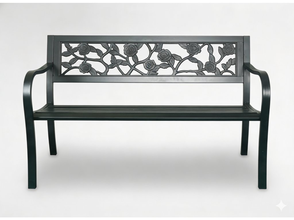 Výjimečným prvkem této lavice je motiv opěradla s růžemi, který dodává půvab a charakter, činící ji nejen nábytkem, ale také dekorativním prvkem zahrady. Černá barva je elegantní a univerzální, takže lavice se skvěle sladí s různými styly venkovních prostor, od klasických po moderní.
