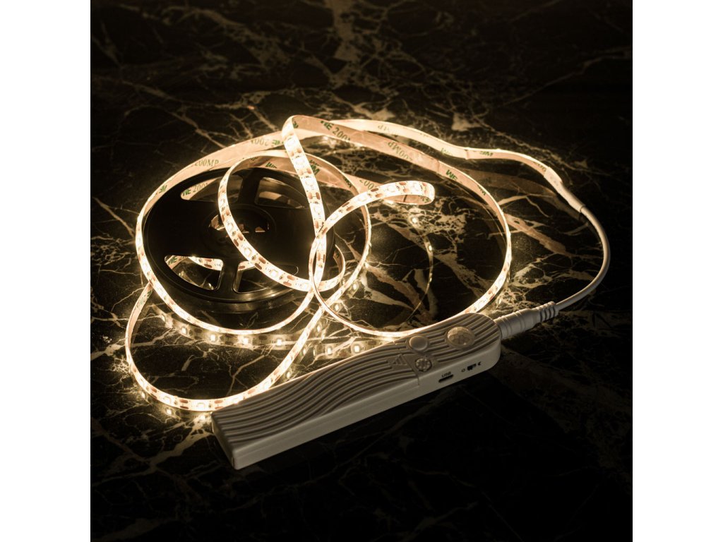 LED PÁSKA S BATERIOVÝM SENZOREM POHYBU 2M TEPLÁ BÍLÁ