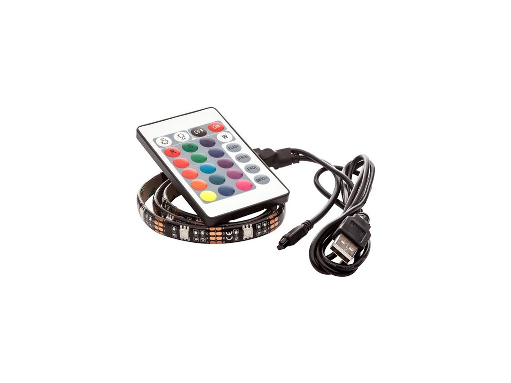 Délka LED pásku činí 2 m (lze ho jednoduše zkrátit). Jeho součástí je dálkový ovladač. Napájení pásku přímo z USB v monitoru/TV/PC/síťového adaptéru (5V). Životnost je až 30 tisíc hodin. Pásek je samolepící využívá technologie firmy 3M.