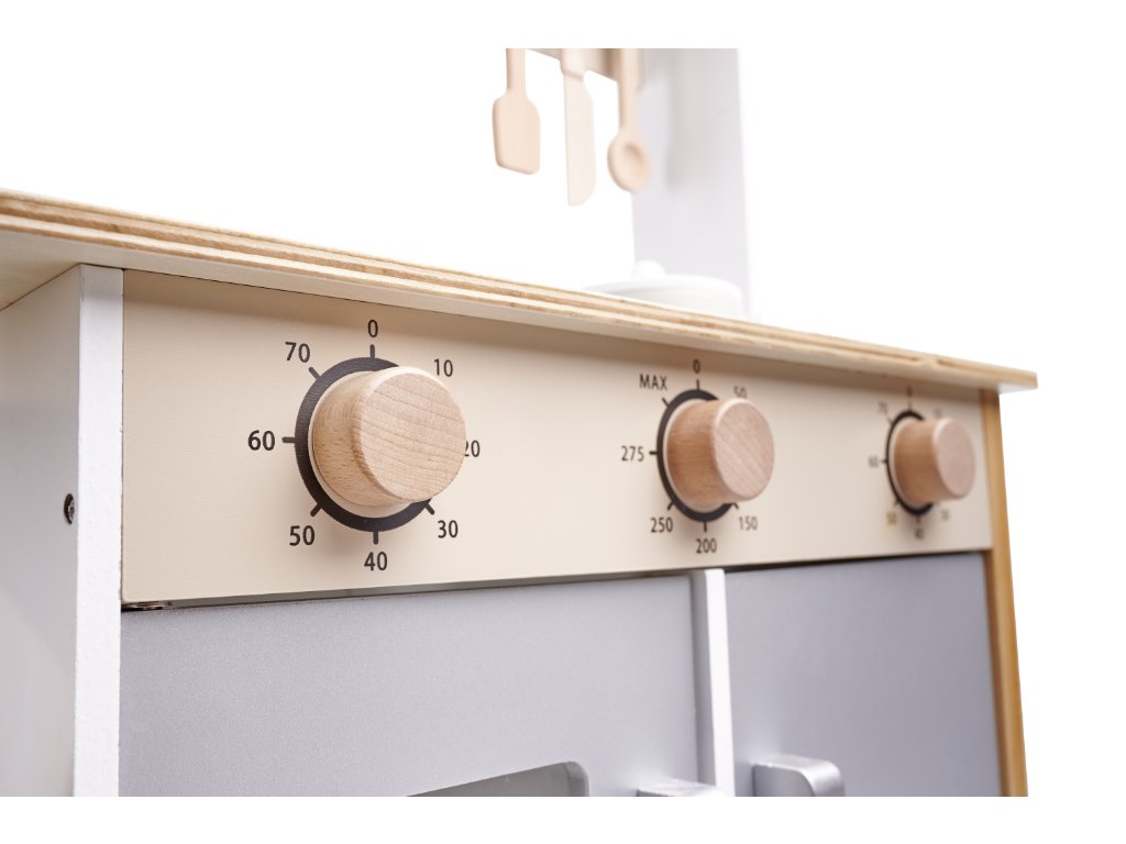 Knoflíky pro ovládání sporáku jsou velmi realistické a připomínají knoflíky na skutečném spotřebiči. Jejich otáčení nevyžaduje velkou sílu, což vašemu děťátku usnadní práci!