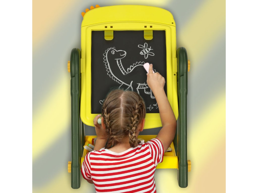 Podle potřeby může vaše dítě povrch magnetické za sucha stíratelné tabule využít k nácviku psaní nebo se pomocí barevných magnetů naučit počítat. Když dostane chuť kreslit křídou, stačí tabuli otočit. Díky tomu je praktická a všestranná.