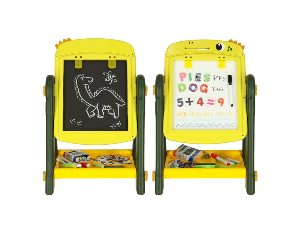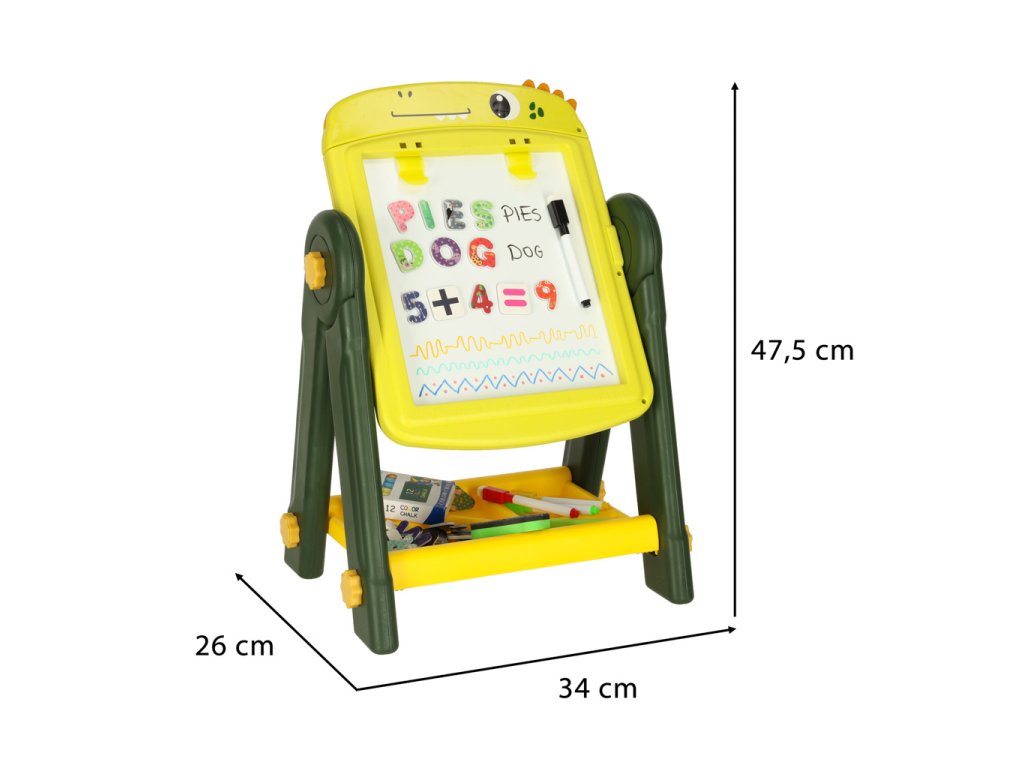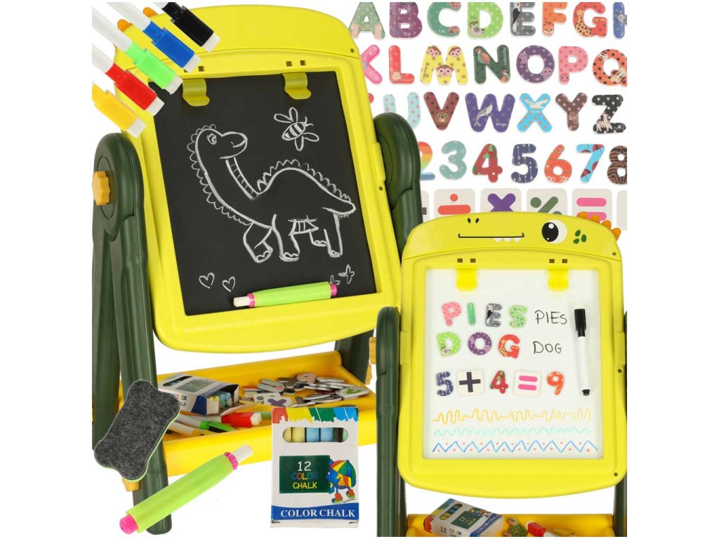 Nechte své dítě rozvíjet se hrou! Našeoboustranná magnetická tabule je ideální pro učení písmen, kreslení a hraní s magnety. Jedna strana je pokrytakřídovým povrchem, druhá je magnetickáza sucha stíratelná tabule, na kterou lze psát fixami a připevňovat magnetické prvky. Je to funkční, bezpečná a atraktivní vzdělávací pomůcka, která roste s vaším dítětem.