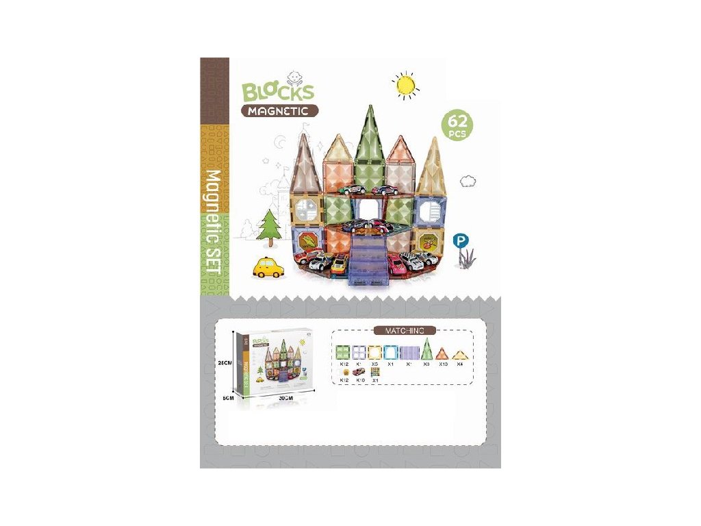 Magnetické kostky s autíčky 62 ks.Doplňkové parametry