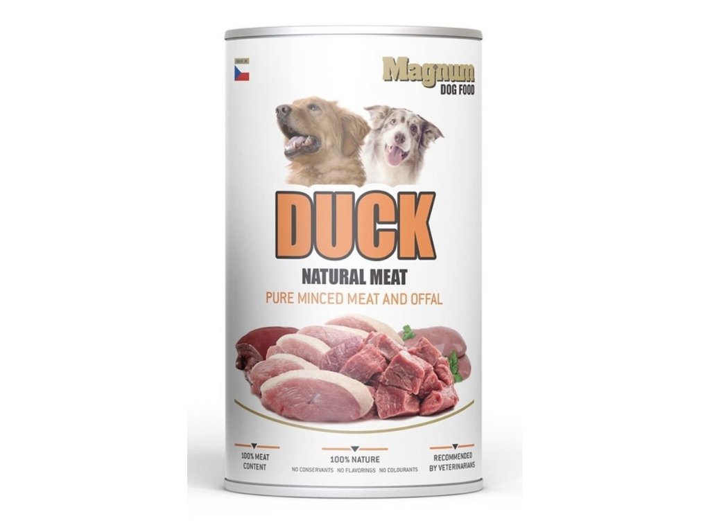 Složení: Maso a vedlejší produkty živočišného původu (hovězí droby, vepřové droby, hovězí maso, kachní maso). Bez umělých konzervantů, dochucovadel a barviv. Jakostní znaky: hrubý protein 16%, hrubý tuk 11%, hrubá vláknina 0,5%, hrubý popel 2,5%, vlhkost 70%, vysoký přirozený obsah vitamínu (A,E,D), aminokyselin (lysin, methionín, cystín). Krmný návod: Podává se při pokojové teplotě. Po otevření uchovejte v chladu.Doplňkové parametry