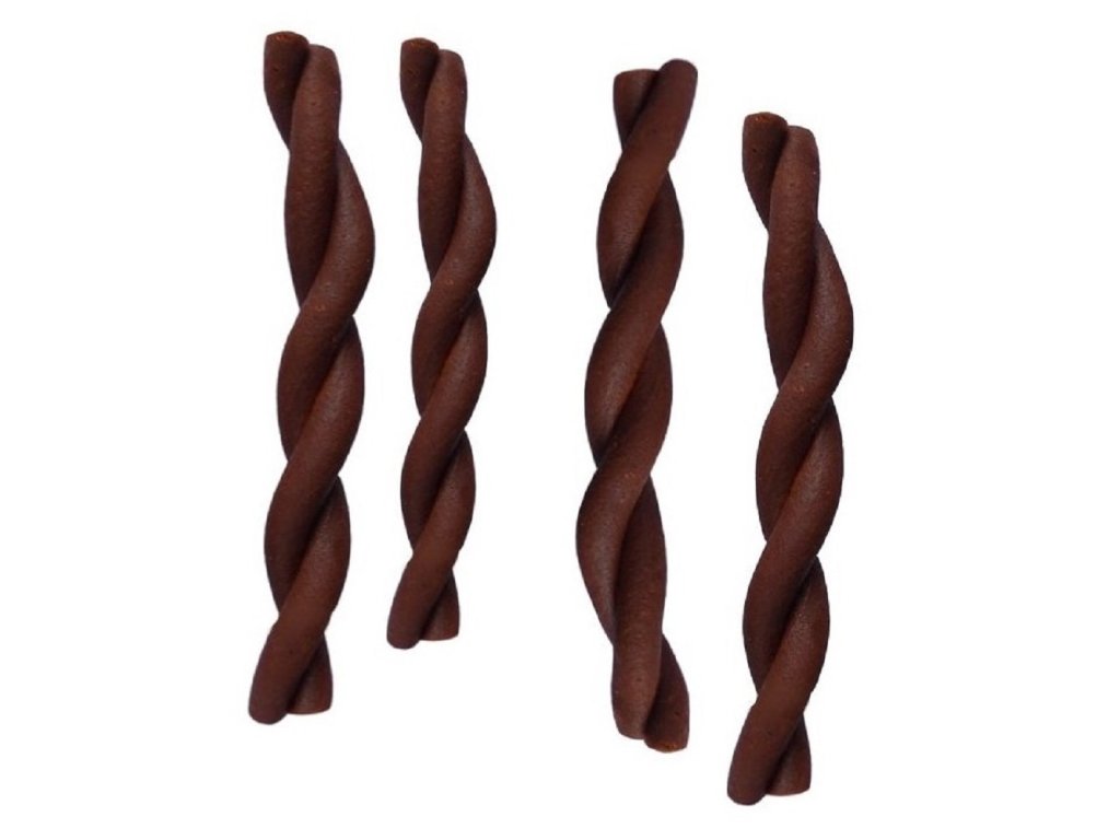 Lahodný polovlhký pamlsek pro psy - kroucené tyčinky o délce 12,5 cm. Jedinečný tvar je ideální pro žvýkání, které posiluje žvýkací svaly a pejska zabaví.Složení: vedlejší produkty živočišného původu, vedlejší produkty rostlinného původu, přírodní příchutě -kuřecí, hovězí, obiloviny, škrob, syrovátka, kaseinát sodný, uhličitan vápenatý, glycerin, přírodní barviva.Jakostní znaky: hrubý protein 38%, tuk 8,0%, hrubý popel 8,0%, vláknina 0,5%, vlhkost 13%Krmný návod: Podávejte 1-3ks denně dle velikosti a váhy psa.Dbejte, aby měl pes vždy přístup k čerstvé pitné vodě.Váha: 750gDoplňkové parametry