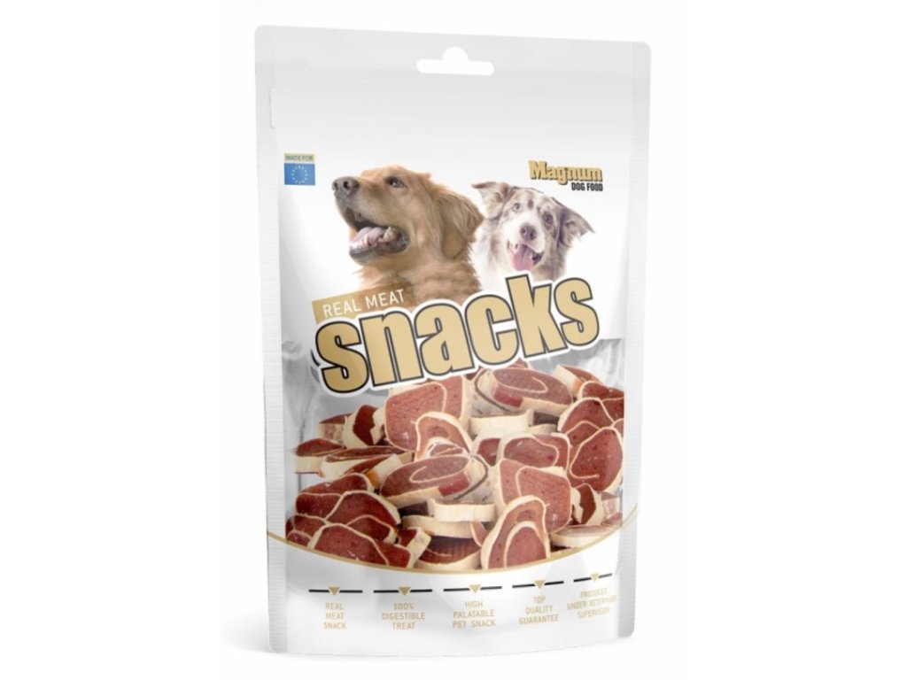 Slouží jako odměna při hře, výcviku nebo jako doplněk stravy při cestách. Složení: kachní maso, rybí maso, glycerin, sorbitol. Deklarované jakostní znaky: hrubý protein 30%, hrubá vláknina 0,6%, hrubý tuk 1%, hrubý popel max. 5%, vlhkost max 18%.Doplňkové parametry