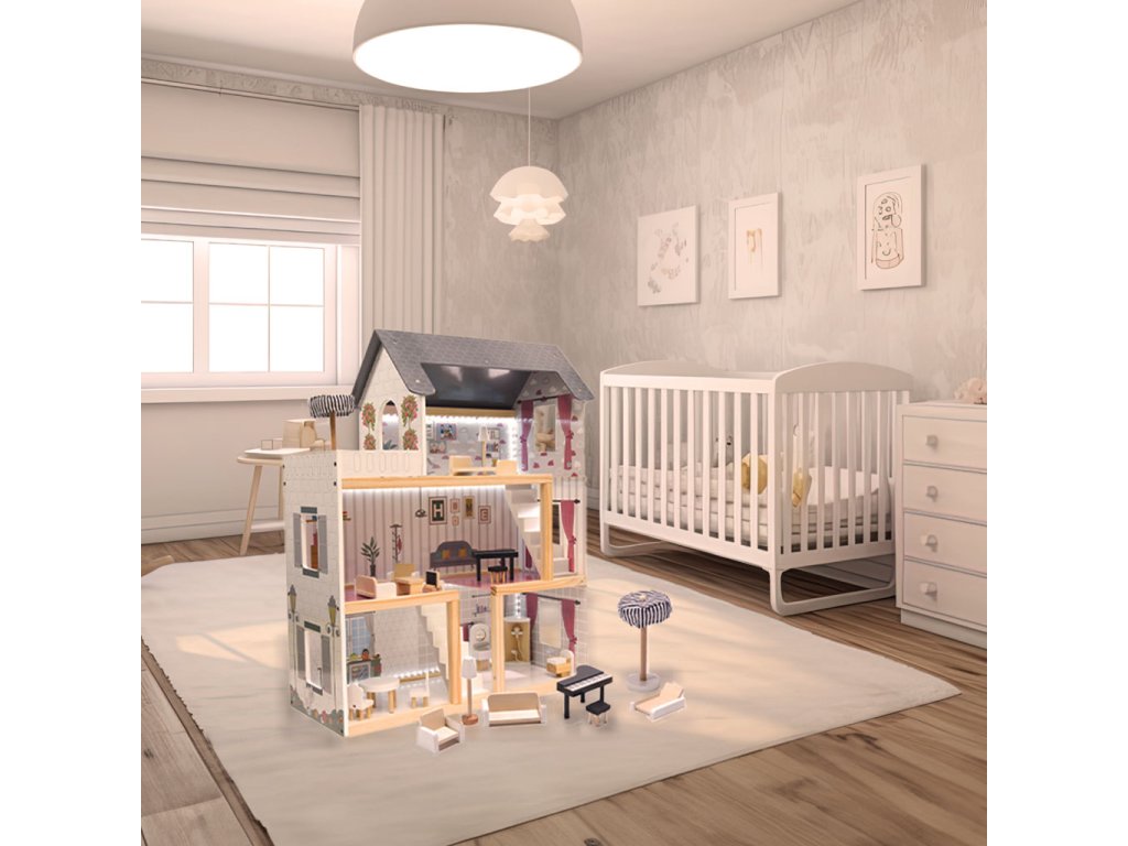 VELKÉ MNOŽSTVÍ PŘÍSLUŠENSTVÍ- dřevěný nábytek poskytuje neomezené možnosti pro hraní a uspořádání jednotlivých místností.