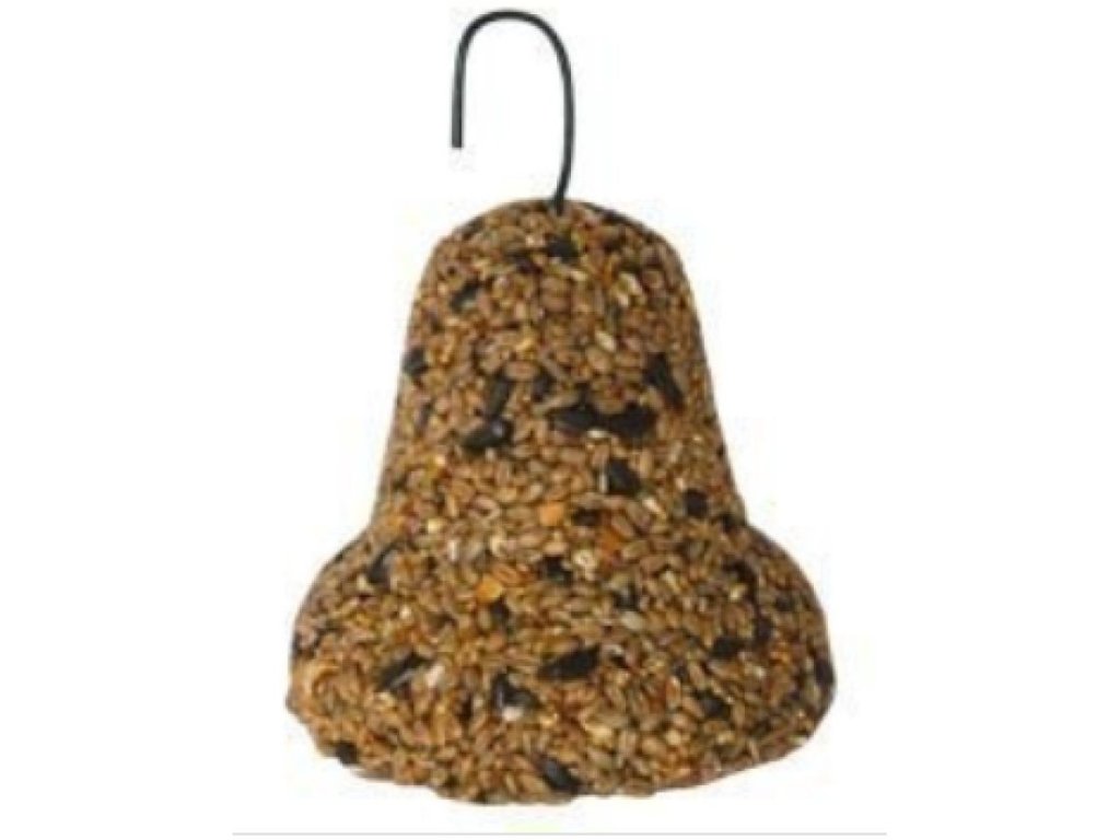 Krmení ptáků na dvoře nebo na zahradě je skvělou formou zábavy a vzdělávání zároveň. Časem budete překvapeni, jaké množství ptáků se ke krmítku slétne. Obilné zvonky jsou skvělým způsobem, jak poskytnout volně žijícím ptákům potravu. Praktický tvar umožňuje zavěsit výrobek kdekoli na zahradě a vypadá velmi atraktivně. Složení: hovězí lůj, slunečnicová semena, kukuřice, uhličitan vápenatý, pšenice, ječmen, proso, sušené bobule, potravinářské barvivo. Deklarované jakostní znaky: hrubý protein 9,8%, hrubý tuk 7,42%, vláknina 5,39%, popel 1,73%Doplňkové parametry