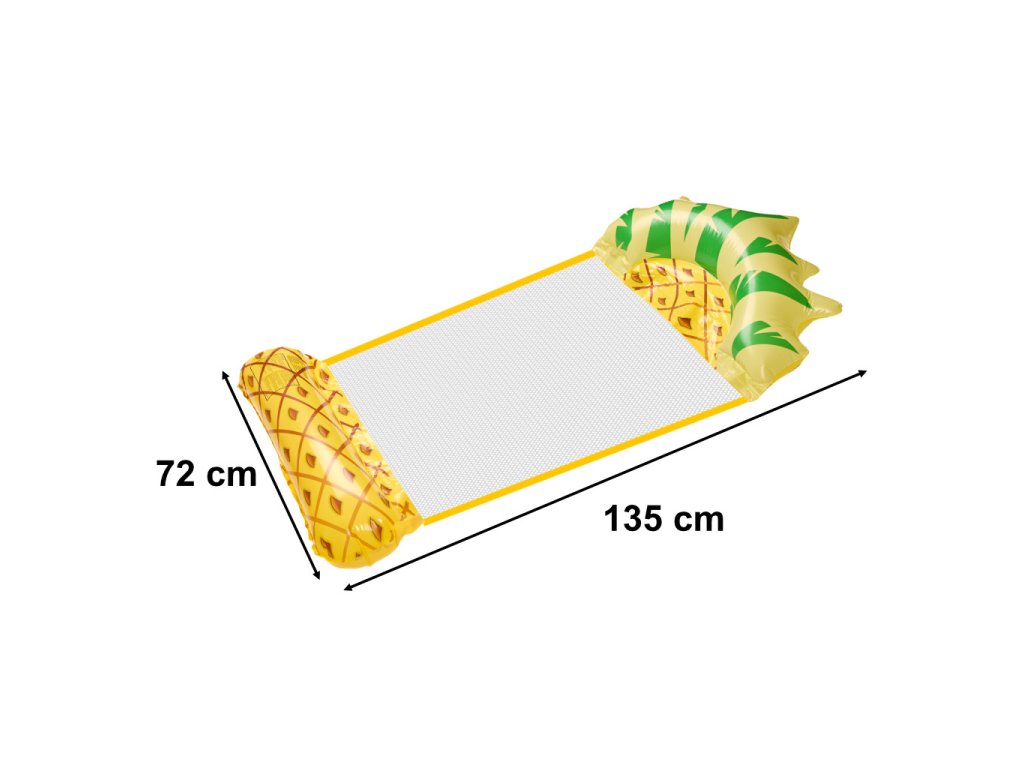 Tato koupací matrace ve tvaru ananasu je barevnou předzvěstí úspěšné dovolené a pohodlného pobytu u vody. Vyniká nejen svými sytými barvami a tropickým designem, ale takésvou funkčností, neboť kombinuje vodní matraci, houpací síť a nafukovacívodní křeslo v jednom.