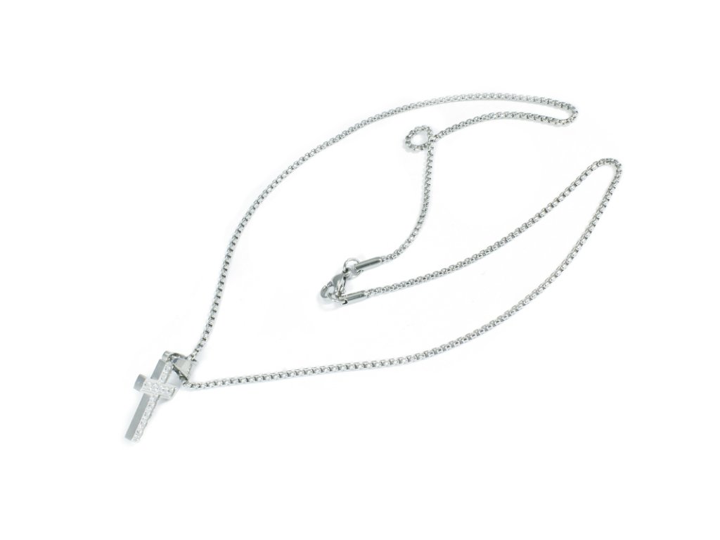 Náhrdelník křížek 2,2 cm z chirurgické oceli se zirkony S11042100