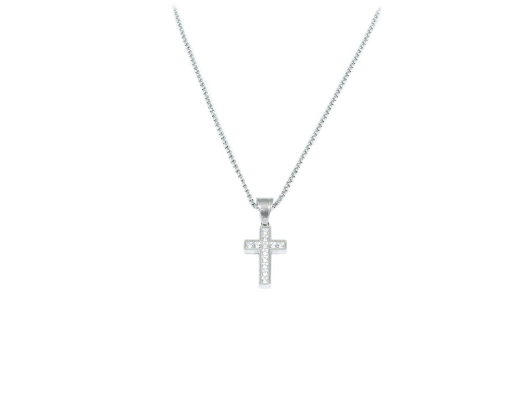 Náhrdelník Křížek 2,2 cm z chirurgické oceli se zirkony S11042100