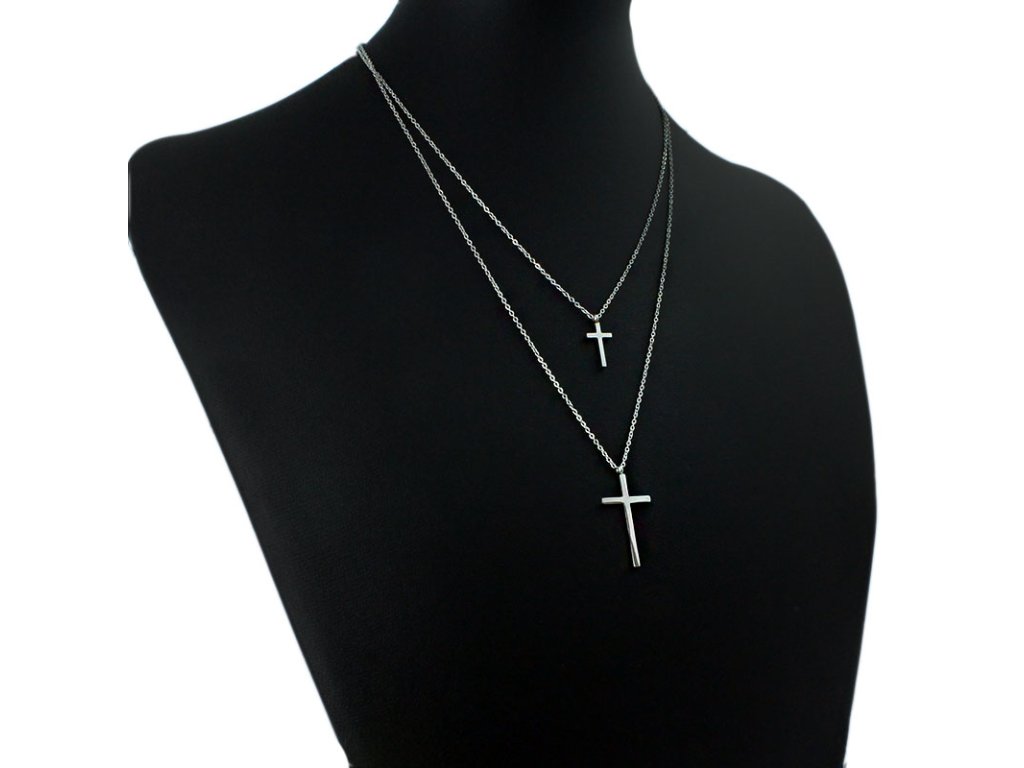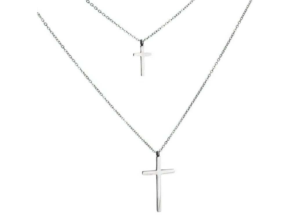 Náhrdelník křížek dvojitý z chirurgické oceli S11108070