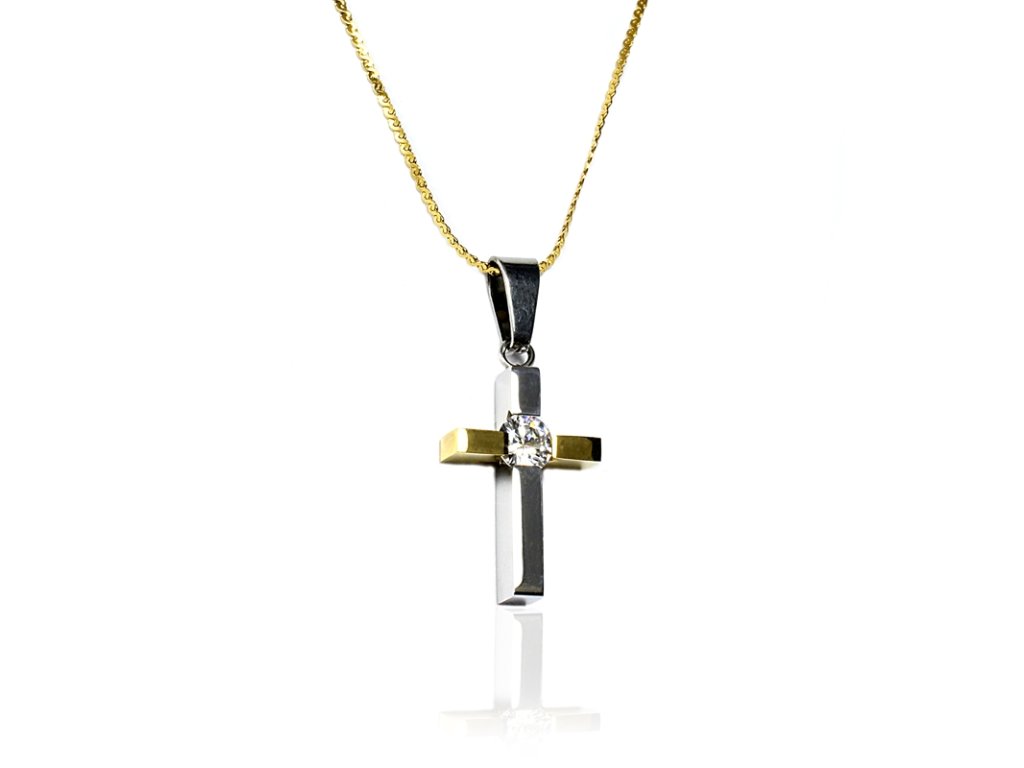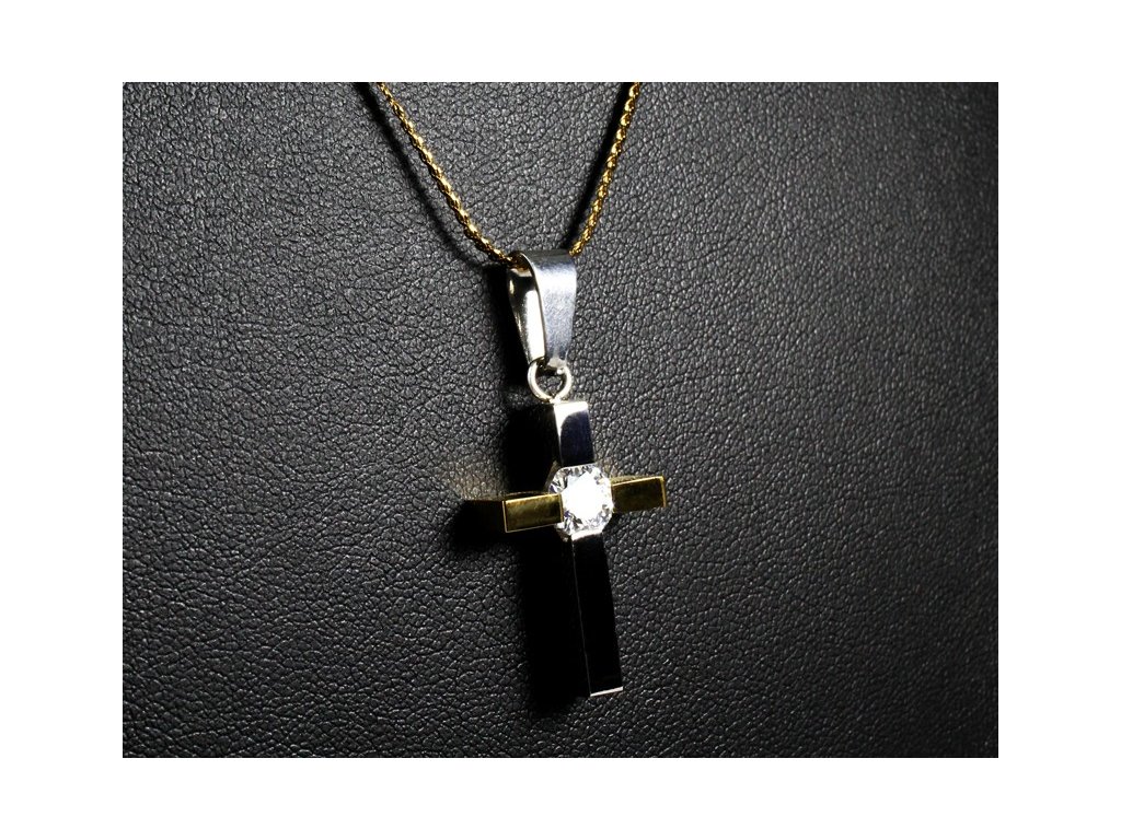 - designový přívěskem ve tvaru kříže s krystalem,