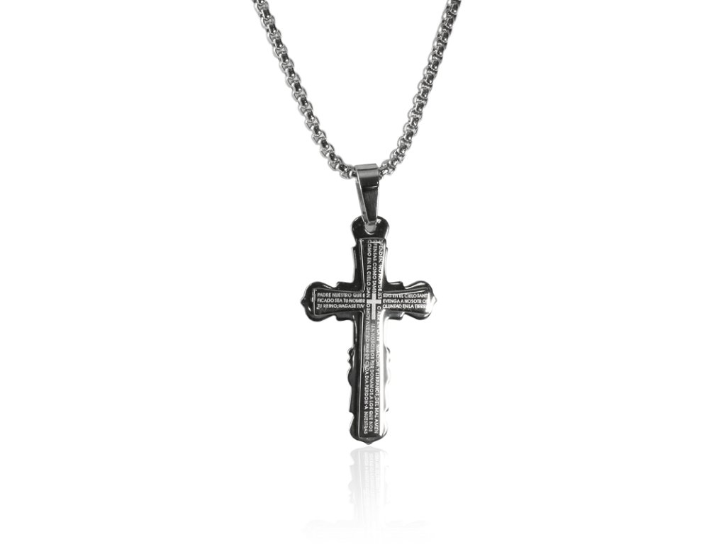 Náhrdelník křížek s nápisy silver z chirurgické oceli S221150