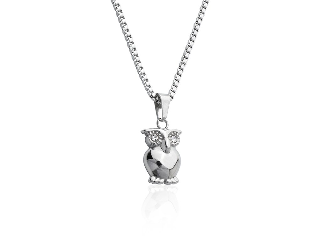 Náhrdelník s přívěskem sova se zirkony z chirurgické oceli S505070