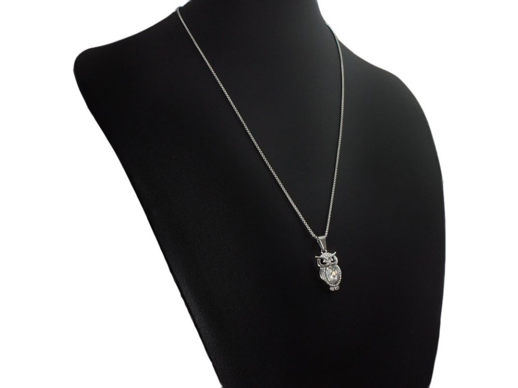 - zdobený přívěskem ve tvaru sovy se zirkony a krystalem,