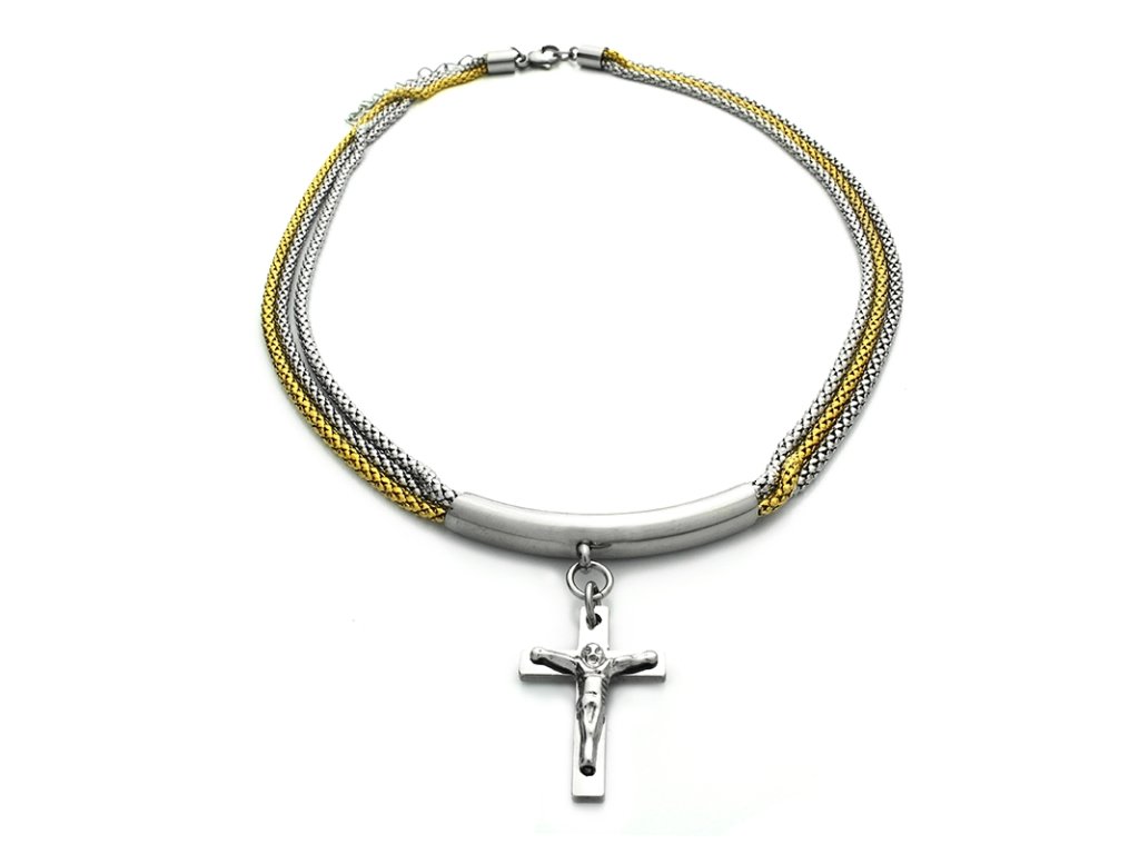 Náhrdelník two color s křížkem z chirurgické oceli S367150