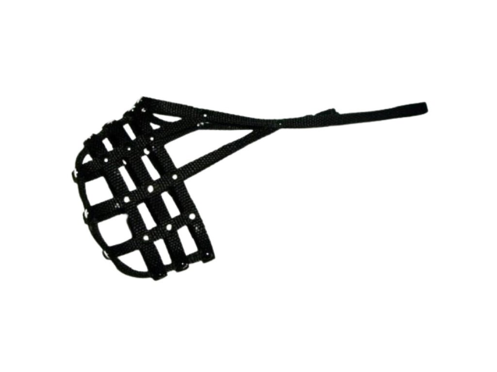 Popruhový náhubek pro buldočka.