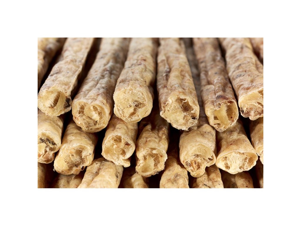 Pochoutka pro psy bez přidaných barviv a konzervantů. Bez lepku a obilovin. Složení: hovězí kůže, hovězí kolagen, dršťky 10,7%, inulin (čekanka) 0,5%, kalcium, šípek (80 mg/kg), brusinka (80 mg/kg).Deklarované jakostní znaky: hrubý protein 84,8%, hrubá vláknina <1,0%, hrubý tuk 1,4%, hrubý popel 4,8%, vlhkost 13,7%.Zajistěte zvířeti dostatek čerstvé, pitné vody.Doplňkové parametry