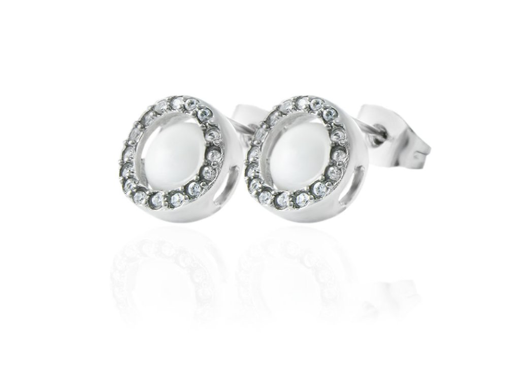 Náušnice keramické se zirkony bílé z chirurgické oceli S11269105