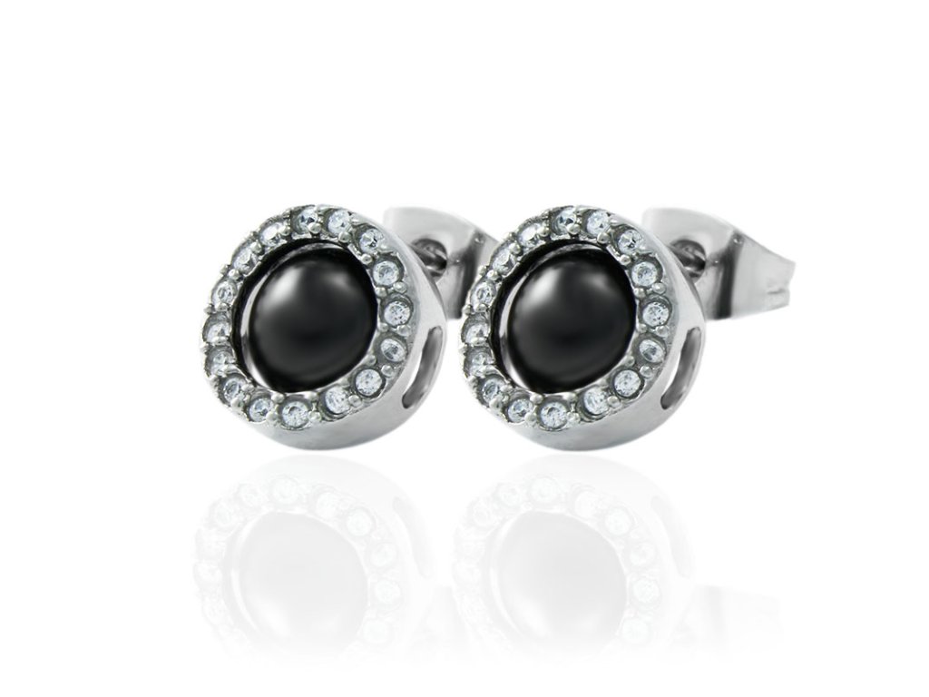 Náušnice keramické se zirkony černé z chirurgické oceli S113199105