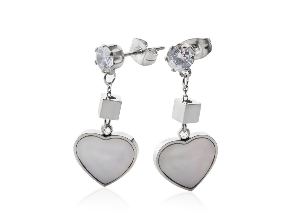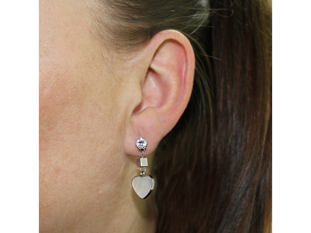 - každou náušnici zdobí srdce se syntetickou perlou a zirkon,