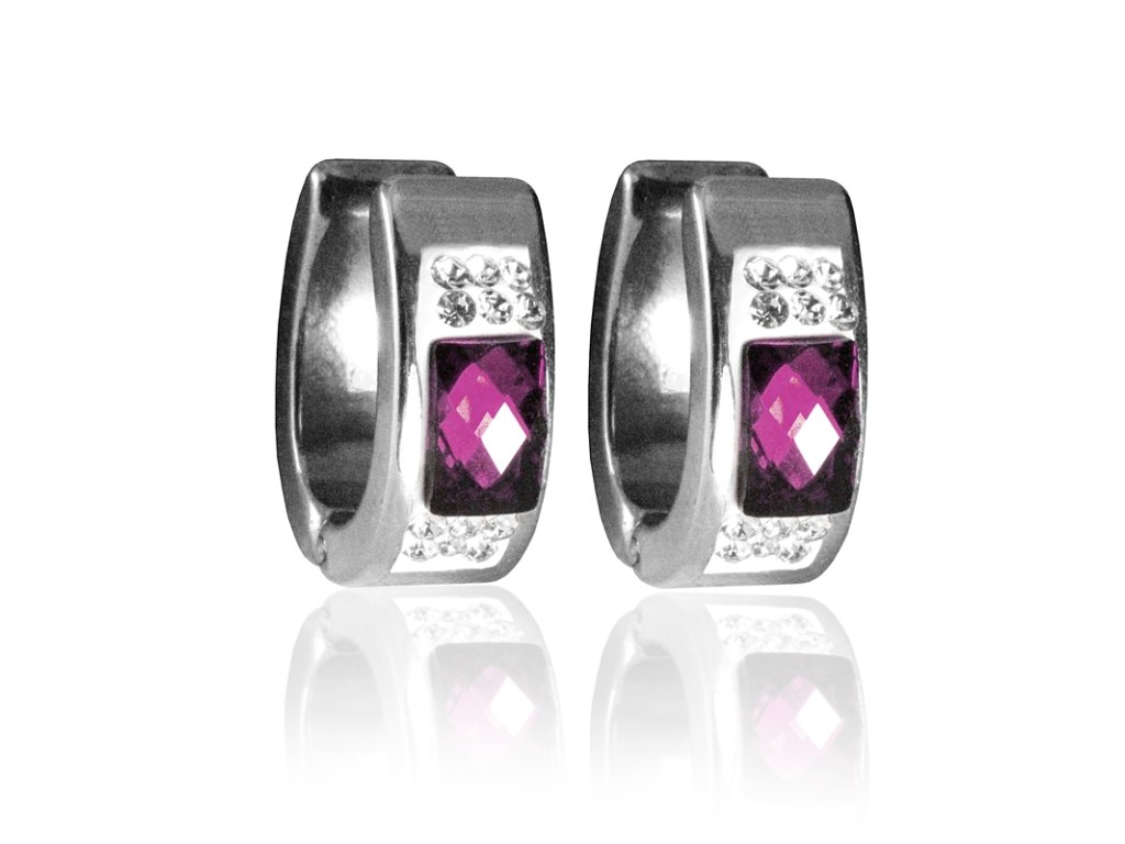 Náušnice s fialovými zirkony z chirurgické oceli S270045
