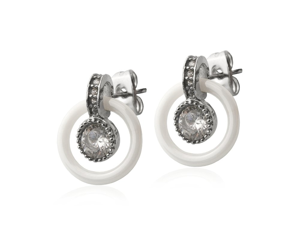 Náušnice se zirkony a keramikou z chirurgické oceli S423100