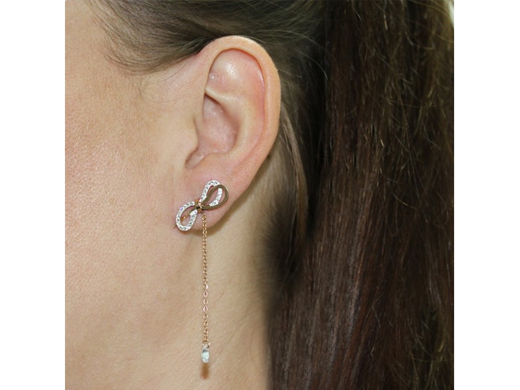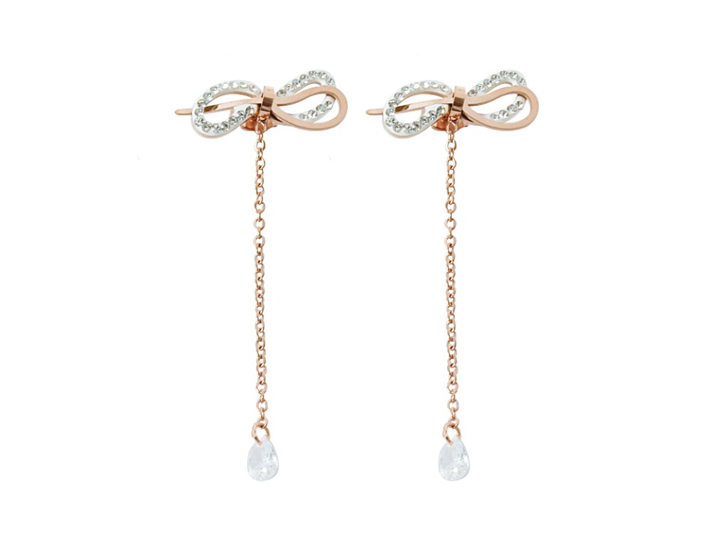Náušnice visací mašle se zirkony rose gold S837100