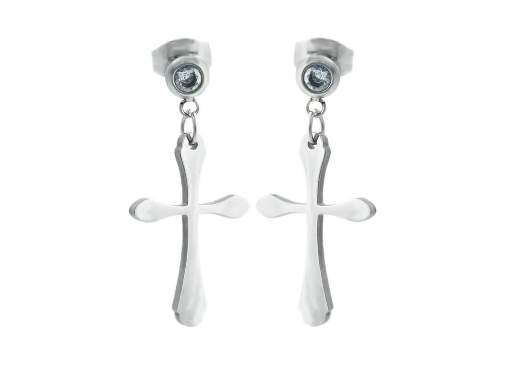 Náušnice visací se zirkony kříž z chirurgické oceli S11284040
