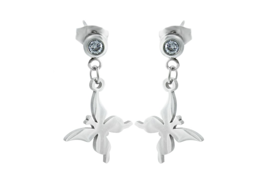 Náušnice visací se zirkony motýl z chirurgické oceli S11285040