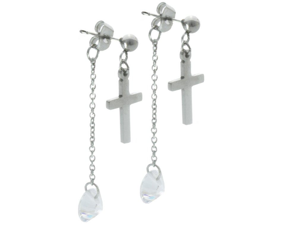Náušnice z chirurgické oceli křížek s řetízkem S781080