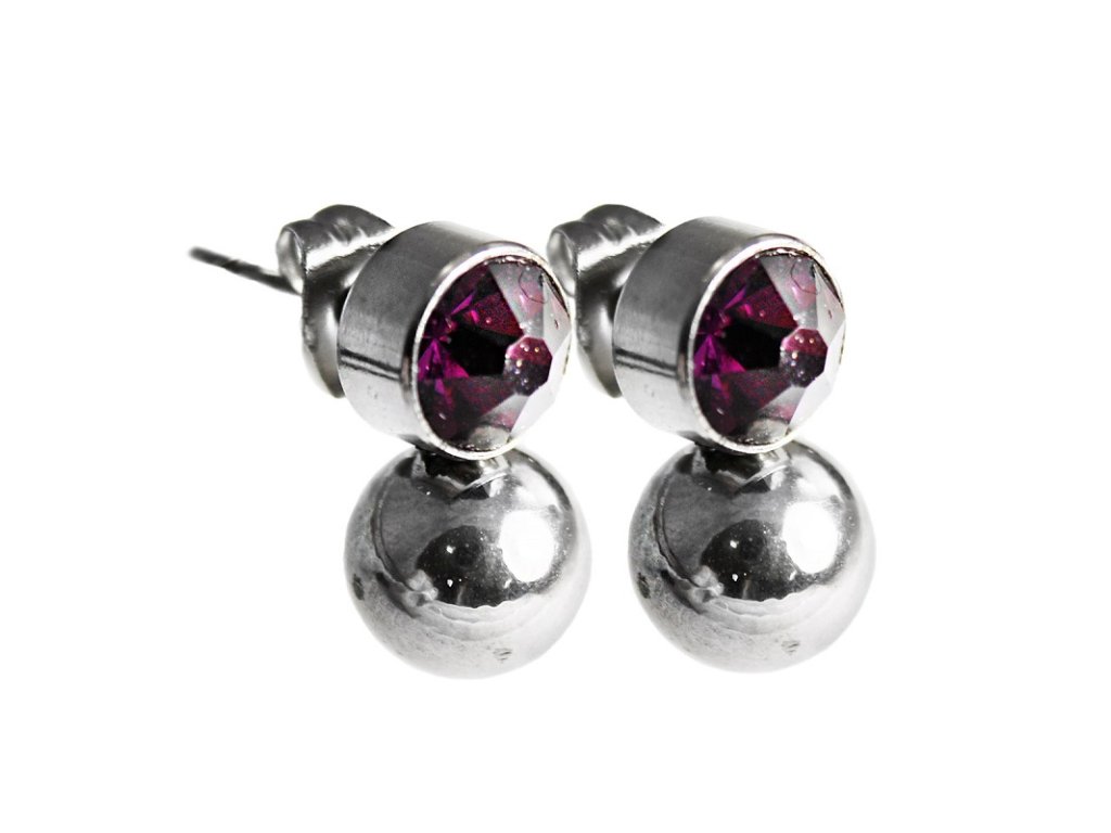 Náušnice z chirurgické oceli s fialovým krystalem S933035