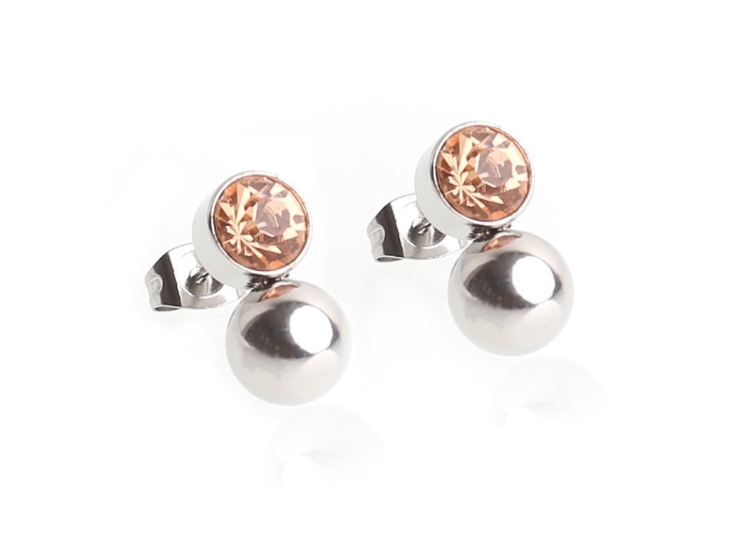 Náušnice z chirurgické oceli s oranžovým krystalem S707035