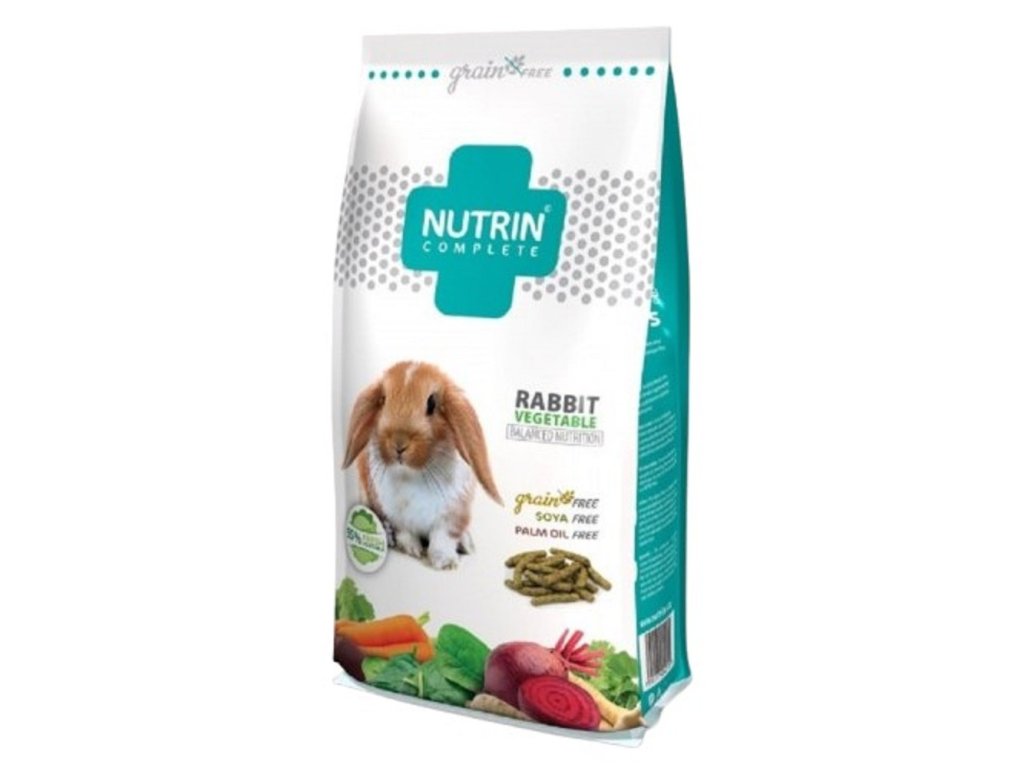 Krmivo neobsahuje sóju, palmový olej, konzervanty, barviva, ochucovadla, přidané cukry ani živočišné složky. Díky nižšímu obsahu škrobu a energie si váš králík udrží optimální hmotnost. Vyšší obsah vlákniny podporuje správné fungování trávicího traktu a tím přispívá k udržení zdraví. Dostatek vlákniny optimalizuje prostředí ve střevech, čímž pomáhá trávení potravy a dochází k potlačení růstu nežádoucích mikrobů v trávicím traktu. Strukturální vláknina vytváří vhodnou strukturu střevního obsahu a stimuluje střevní peristaltiku.Složení: vojtěška, seno, bramborový škrob, lignocelulosová vláknina, kvasnice (Saccharomyces cerevisiae), hrachový protein, petržel, slunečnicové slupky, karotka, karotková vláknina, pastiňák, cukrovarské řízky, hroznové výlisky, len, ostropestřec, monokalciumfosfát, červená řepa, chlorid sodný, špenát, FOS - čekankový inulin 2 g / kg, jablečné výlisky, uhličitan vápenatý, Yucca schidigera 1 g / kg.Analytické složky: Hrubý protein 14 %, hrubá vláknina 20 %, škroby 15 %, hrubé oleje a tuky 2,5 %, obsah anorganických látek 7 %, Ca 0,8 %, P 0,5 %.Doplňkové látky / kg: Vitaminy: Vitamin A (3a672a) 10 000 m.j., vitamin D3 (3a671) 1 200 m.j., vitamin C (3a300) 200 mg, vitamin E (3a700) 50 mg. Stopové prvky: Fe (3b106) 80 mg, Mn (3b506) 60 mg, Zn (3b607) 60 mg, Cu (E4) 10 mg, I (3b202) 1 mg, Co (3b305) 1 mg, Se (3b8.11) 0,3 mg. Aminokyseliny: L-lysin (3.2.3.) 2 g, DL-methionin (3c301) 1 g. Emulgátory: Lecitin (E 322) 5 g.Krmný návod: krmivo Nutrin Complete Rabbit Vegetable Grain Free je určeno pro králíky od 8. měsíce věku. Přechod z krmiva pro mladé králíky by měl probíhat postupně zhruba od 7. měsíce, kdy už je většina jedinců fyzicky vyspělá. V praxi se jedná o pozvolné navyšování krmiva pro dospělce na úkor junior granulí. Nahrazování původního krmiva by mělo proběhnout postupně především z hlediska prevence zažívacích potíží a také proto, že konzervativní králík ne vždy nové krmivo okamžitě akceptuje. Délka období se tak může lišit od několika dnů až po několik týdnů. Krmná dávka od začátku až do úplného vysazení junior granulí, by se měla řídit doporučenou denní dávkou krmiva Nutrin Complete Rabbit Vegetable Grain Free, tedy 4 - 6 g na 100 g tělesné hmotnosti. Tento postup je aplikovatelný i při změnách krmiva v pozdějších fázích věku. Denní množství je vhodné rozdělit a podávat ráno a večer. Vždy zajistěte neomezený přístup k senu a čerstvé vodě. Možné doplňovat o zelené krmivo, ohryz, čerstvé ovoce a zeleninu. V případě, že králík pravidelně nekonzumuje vše nebo není pozorován úbytek sena, je vhodné denní dávku snížit. Zpestření ve formě zeleného krmiva, čerstvého ovoce, zeleniny a ohryzu je možné. Veškeré změny, týkající se krmné dávky, by měly být prováděny s ohledem na tělesnou hmotnost, kondici a zdravotní stav jedince.Doplňkové parametry