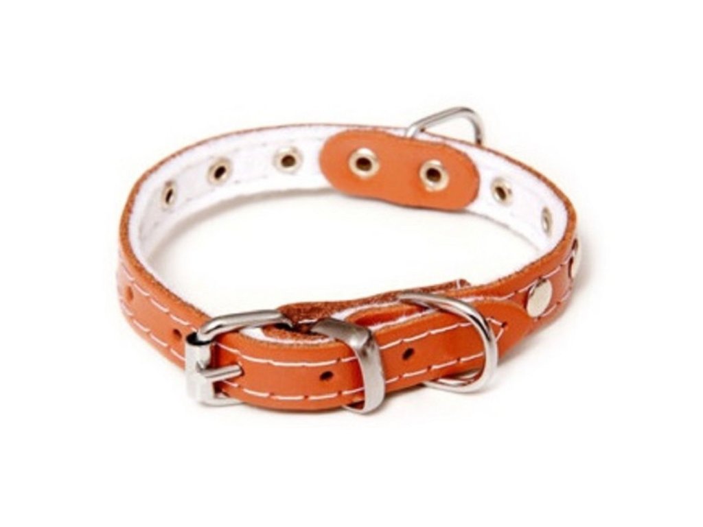 Kožený obojek pro psy, zdobený, podšitý.Rozměr: 1,4 x 35cmBarva: hnědá