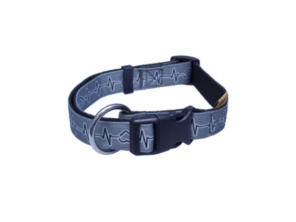 Obojek z popruhu s motivem EKG je velmi měkký a příjemný. Zapínání na plastovou přezku, snadno nastavitelný obvod. Součástí je svařované kovové déčko pro připnutí vodítka Rozměr: 2,5 x délku je možno nastavit na 40-66cmBarva: viz fotoDoplňkové parametry