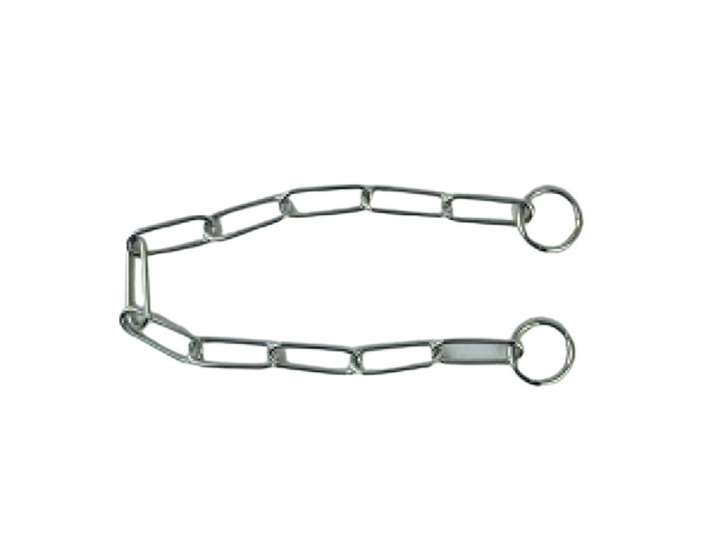Kovový stahovací, oválný obojek. Jedná se o typ obojku, který se utáhne, když za něj pes zatáhne. Pejsek pak reaguje na zvýšený tlak na krku a na zvuk řetízku.Rozměr: síla drátu 0,40cm, délka 60cmDoplňkové parametry