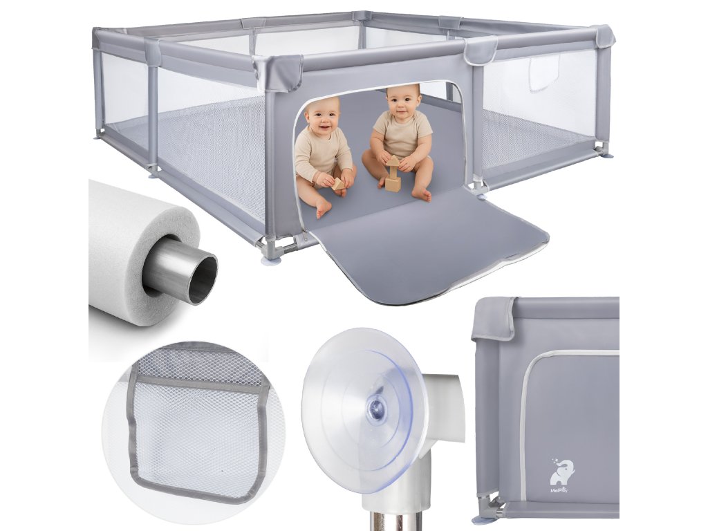 Rozměry: 180x200x65cm Materiál: 100% polyester Konstrukce: ocel (trubky), plast (PP) Věk: 6-36 měsíců Max. hmotnost: 15kg Produkt splňuje požadavky normy EN 12227:2010