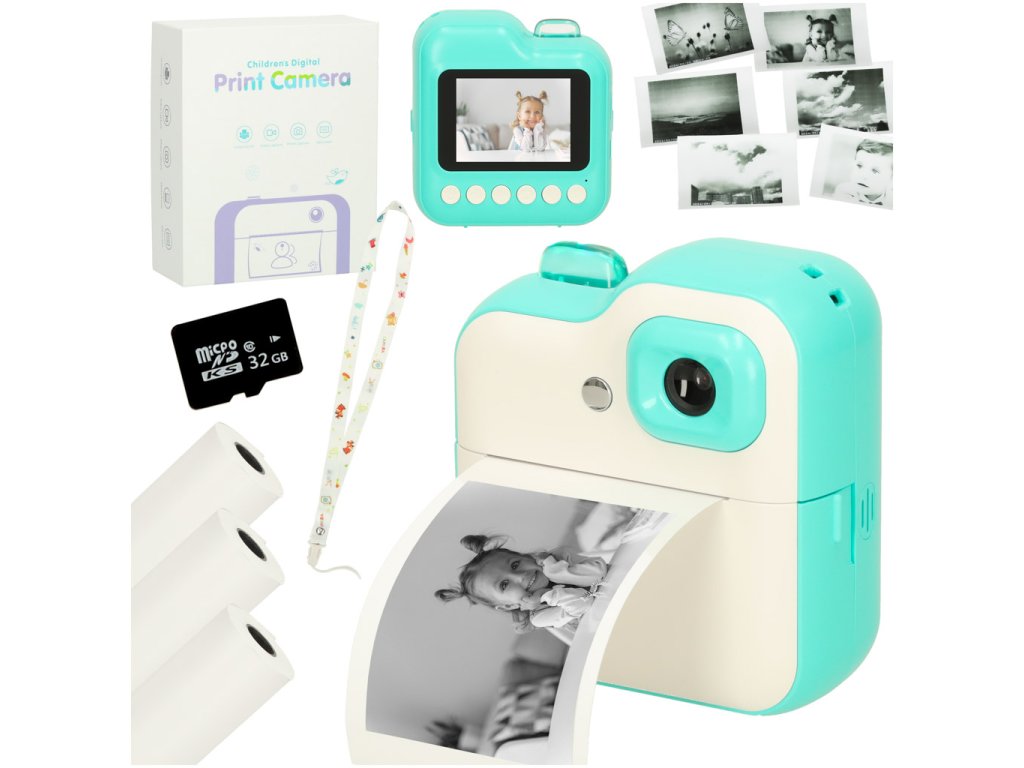 Zelený instantní fotoaparát s funkcí tisku fotografií byl navržen pro děti, které chtějí rozvíjet svou kreativitu a vášeň pro fotografování!