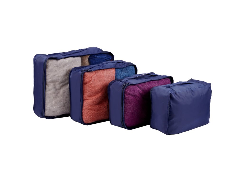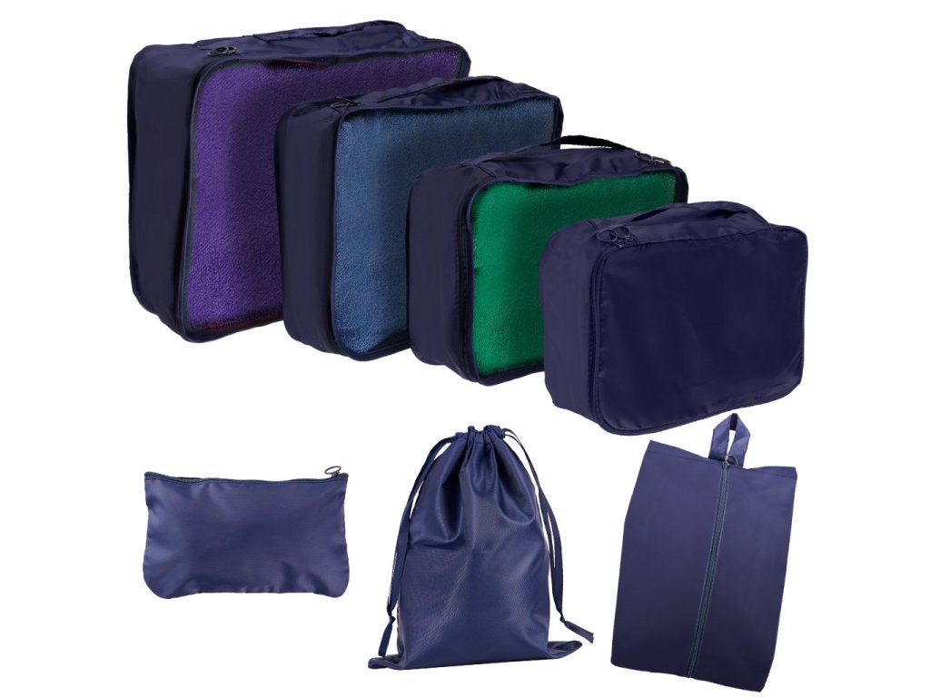 Praktické organizéry do kufru - nepostradatelné na každé cestě! Díky nim bude udržování pořádku uvnitř zavazadla mnohem snazší. Sada obsahuje 7 organizérů různých velikostí - jsou zde čtyři kostky na oblečení, taška, organizér na boty, toaletní kufřík a malé pouzdro na drobnosti. Všechny předměty v sadě mají tmavě modrou barvu.