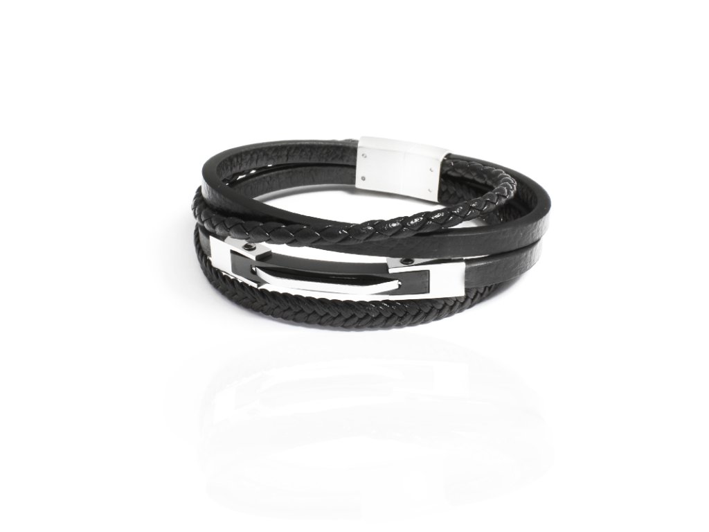 Pánský kožený náramek černý S1063220