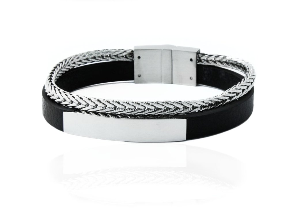 Pánský kožený náramek z chirurgické oceli S11148200