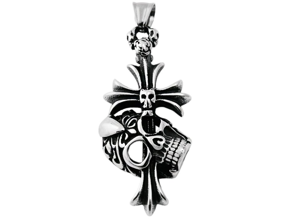 Pánský přívěsek 5,5 cm z chirurgické oceli kříž s lebkou S11313080