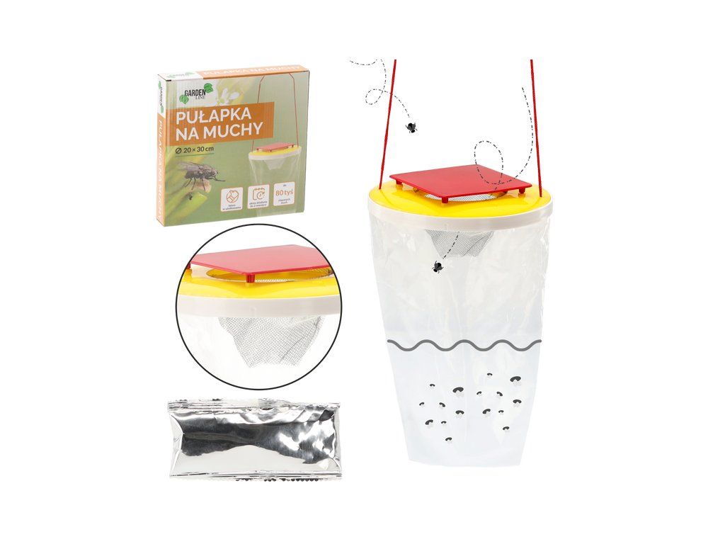Past efektivně eliminuje hmyz z okolí. Speciální konstrukce společně s lákavým prostředkem umožňuje mouchám snadno vstoupit dovnitř, ale pak se nemohou dostat ven. Produkt je mimořádně výkonný – jedna past umožňuje zbavit se až 80 000 much! Zajišťuje dlouhodobé působení až do 2 měsíců, což omezuje nutnost časté výměny.